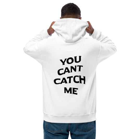 “YOU CANT CATCH ME” Premium eco hoodie (White)